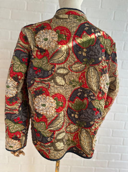 Designer Nelly de Grab Gold Metallic Paisley Tunic Top Pantsuit with Gold Braid Trim.
